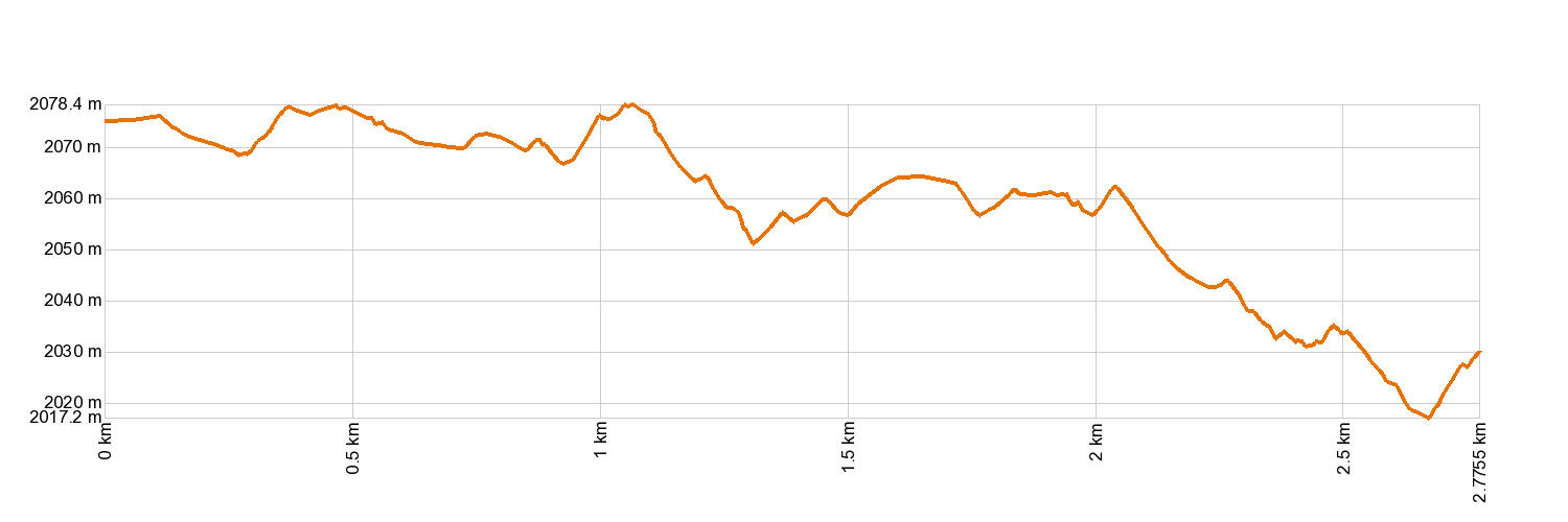 Comodo sentiero che costeggia un bel cono vulcanico ed entra nel cratere; offre inoltre una magnifica vista di Valle de La Orotava e del mare di nubi che lo può ricoprire. È anche un buon posto per osservare la transizione dal bosco di pini delle Canarie ai cespugli di alta montagna. Si notano, tra i materiali vulcanici che hanno formato il cono, le grandi bombe vulcaniche che si sono accumulate sui fianchi. Trattandosi di una zona di contatto tra ginestre e il bosco di pini, alle specie avicole più comuni del Parco, come la zanzariera delle Canarie, la pispola di Berthelot e la sterpazzola se ne uniscono altre che sono più caratteristiche dell’ambiente forestale quali fringuelli azzurri, cinciarelle, merli e pettirossi. Non è neanche rara la presenza dello sparviero, un rapace più tipico dei boschi che dei luoghi aperti. Tra i molti invertebrati vale la pena di notare la “lagarta del pino” (Calliteara fortunata) un interessante bruco con peluria lunga e colori vistosi che vive sia sulle ginestre e sulle ginestre dei carbonai che sui pini.